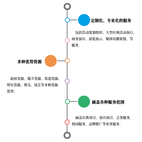 碼上來客(山東)文化傳媒有限公司集活動、慶典、演出、銷售爲一體(tǐ)的綜合性職能團隊,下轄策劃、慶典、演藝。 在爲客戶提供定制化、專業化的服務中,風(fēng)順文化傳媒可(kě)提供包括活動策劃組織、大(dà)型慶典活動執行、商務演出、展覽展示、媒體(tǐ)傳播策劃、等服務。